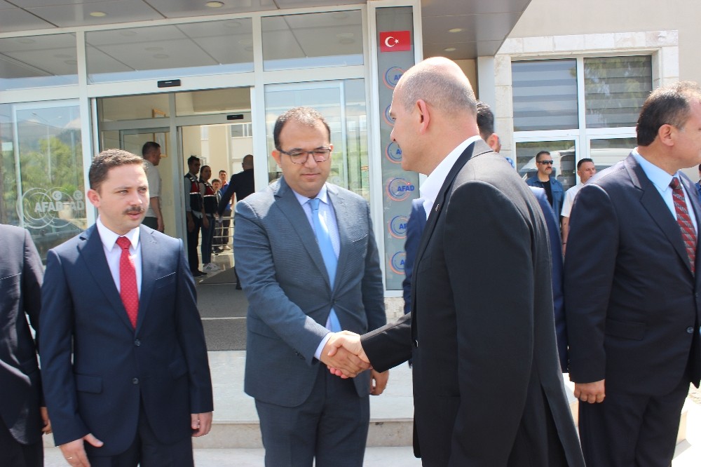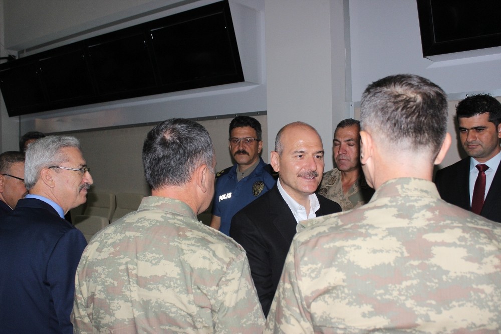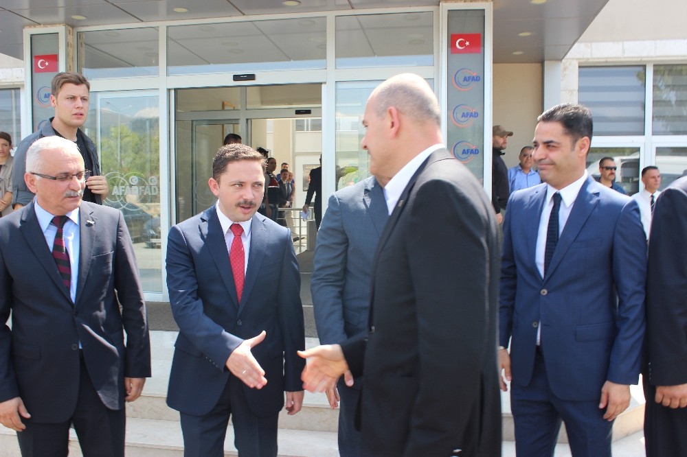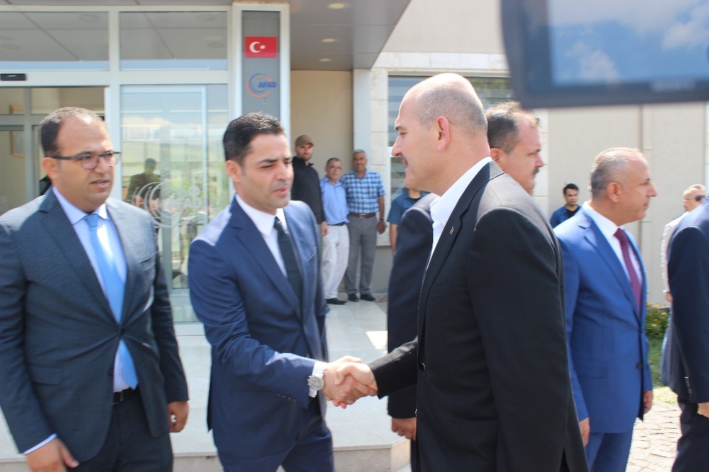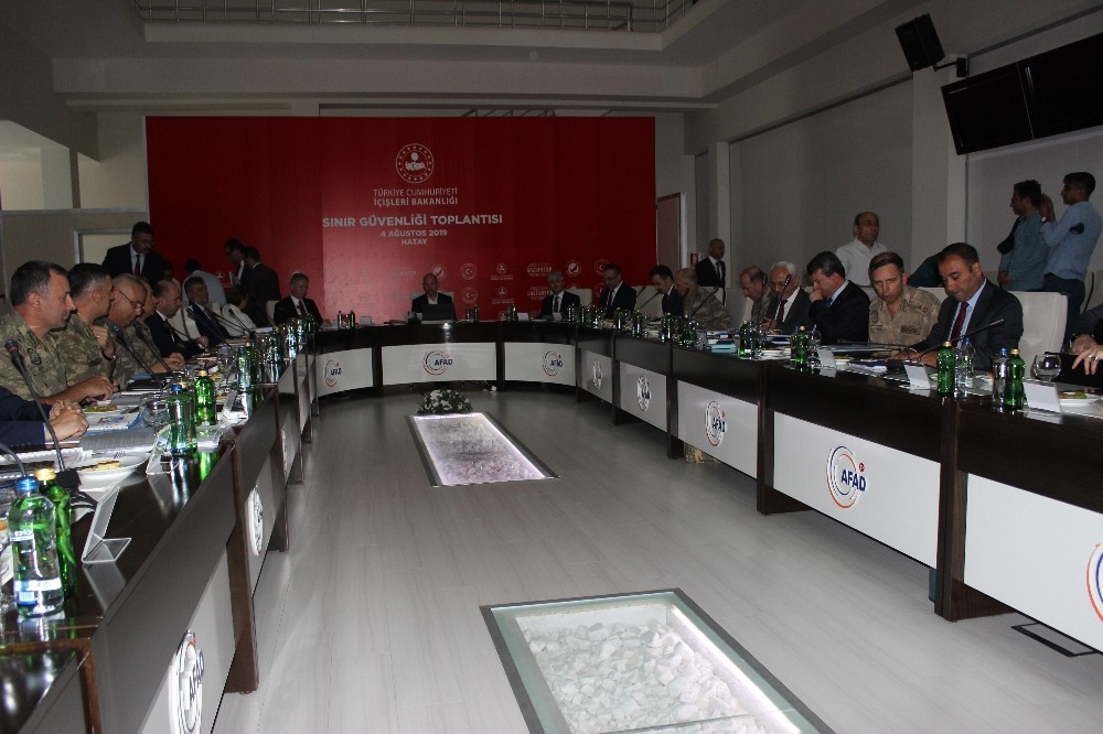 Hatay Havalimanı’nda karşılanan İçişleri Bakanı Süleyman Soylu, daha sonra Sınır Güvenliği Toplantısı için AFAD Hatay İl Müdürlüğü İl Afet ve Acil Durum Yönetim Merkezi’ne geçti.