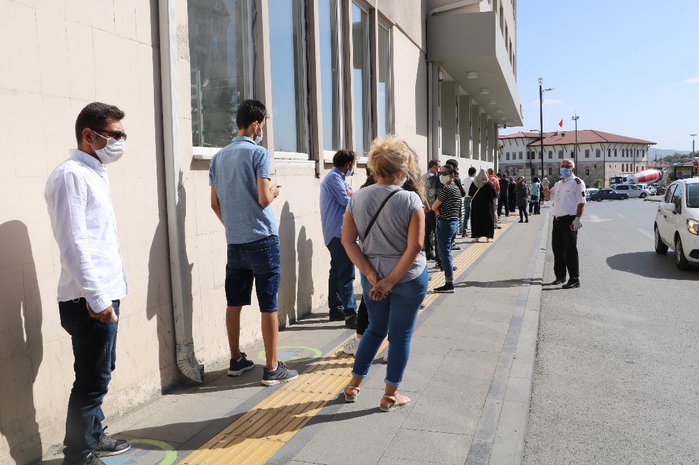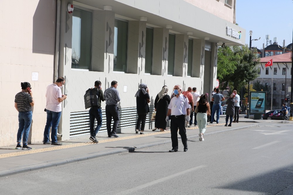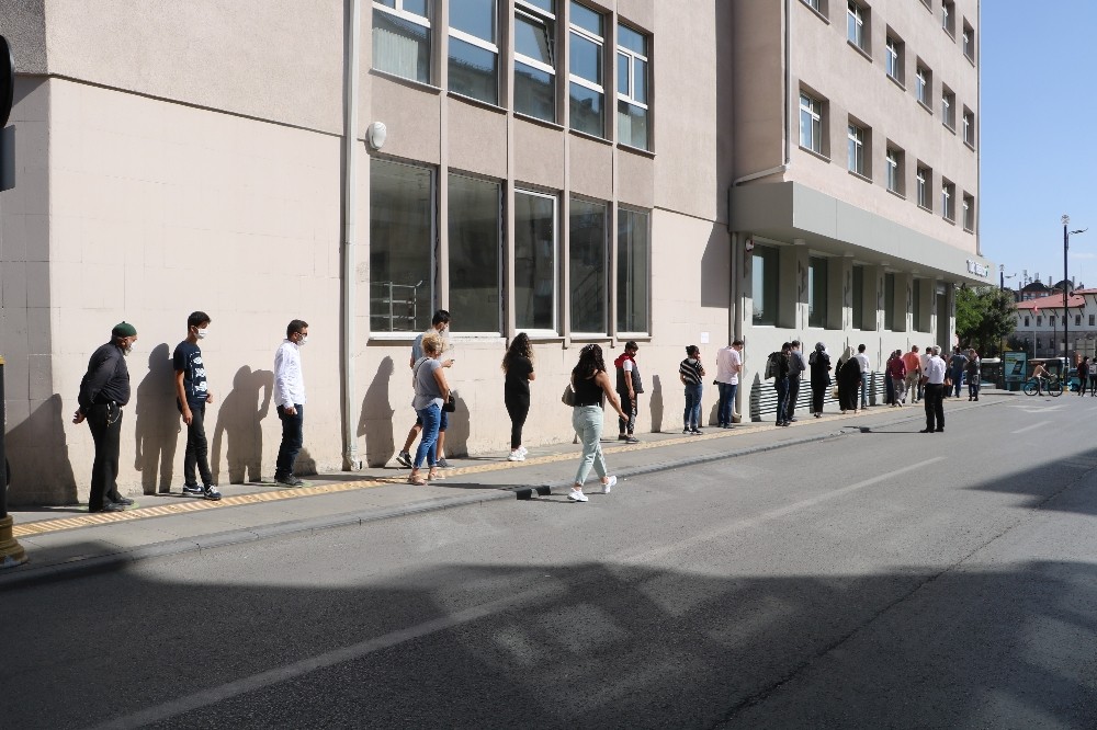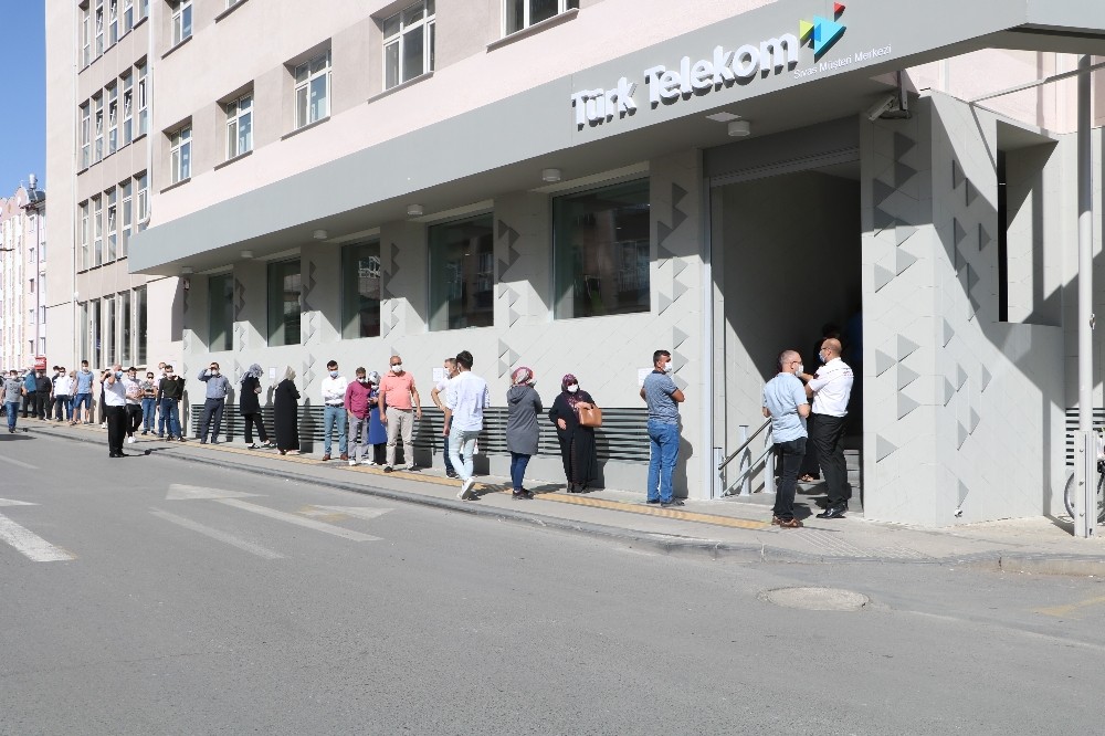 Uzaktan eğitimin hayata geçmesiyle birlikte interneti olmayan Sivaslılar, kentteki internet satış noktaları önünde uzun kuyruklar oluşturdu.
