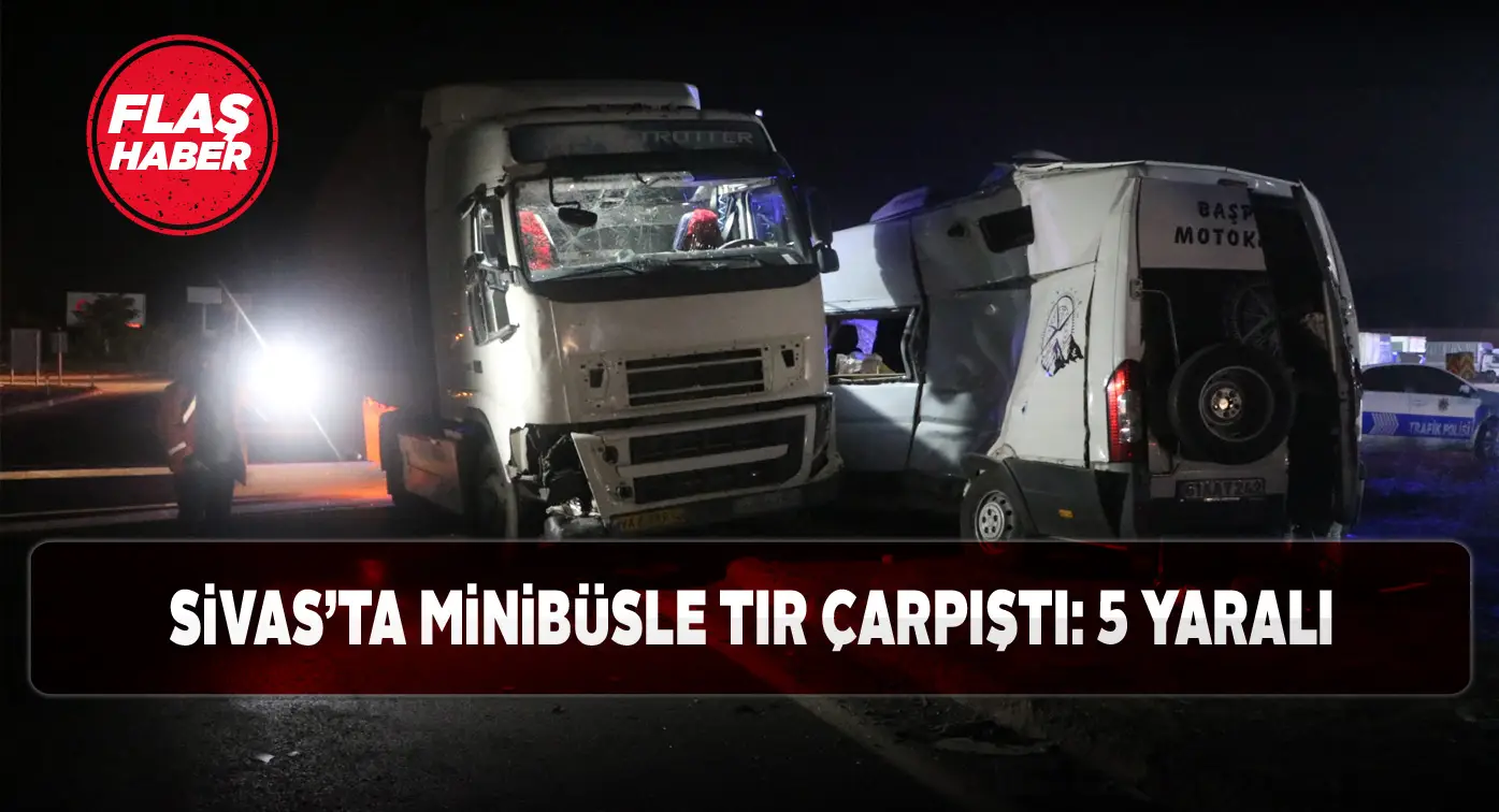 Sivas’ta dün gece yarısı çok büyük bir kaza yaşandı. Büyük bir tır ile minibüsün çarpışması sonucu 5 kişi yaralanarak hastaneye kaldırıldı.