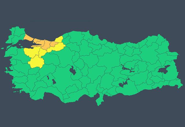 Meteoroloji, İstanbul, Kocaeli, Yalova, Sakarya ve Düzce için turuncu, Zonguldak, Bolu, Bilecik, Bursa ve Kütahya için sarı uyarıda bulundu.