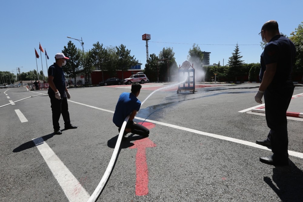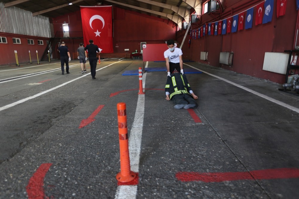 2 gün süren sınavlarda adayların maske takmaya dikkat ettiği ve hepsinin tek tek ateşinin ölçüldüğü görüldü. Ter döken 335 adaydan yalnızca 67’si itfaiye eri olmaya hak kazanacak.