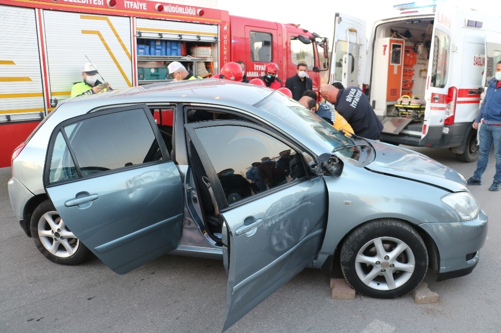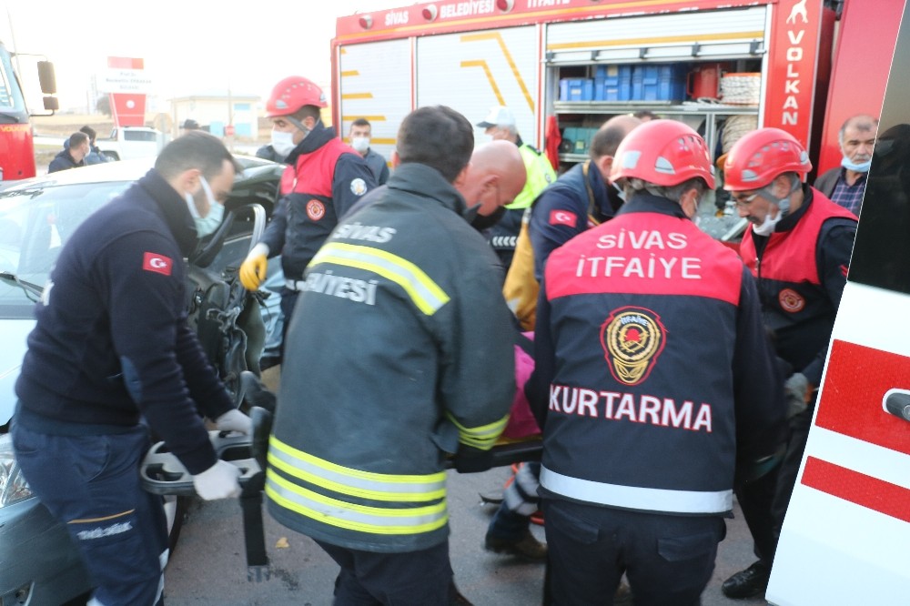 Sivas merkezde iki aracın çarpışması sonucu kaza meydana geldi ve kazada araçta sıkışan kadın sürücü itfaiye ekipleri tarafından kurtarıldı.