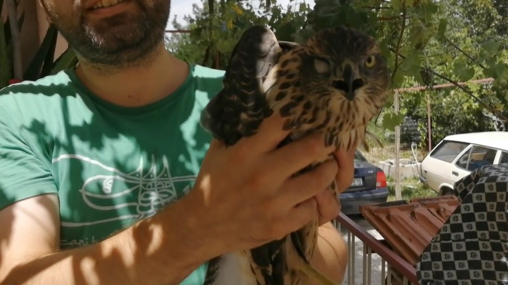 Hemen dışarı giderek, balkonunda yerde bulunan atmacayı yakalayan Mazlum, yaralı ve uçamaz halde olduğunu görünce, durumu Isparta Belediyesi Veteriner İşleri Müdürlüğü’ne haber verdi.