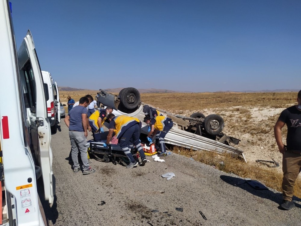 Sivas’ta devrilen kamyondaki bir kişi hayatını kaybetti