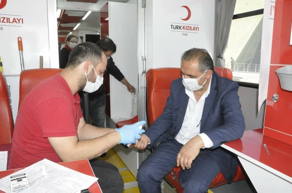 Gürün İlçe Terminali’nde başlatılan kan bağışı kampanyasında vatandaşlara önayak olan Başkan Nami Çiftçi, bağış aracına binerek kan verdi. Vatandaşlara yaşadığımız pandemi sürecinde ülke genelindeki kan stoklarının çok azaldığını ve takviye edilmesi gerektiğini söyleyen Başkan Nami Çiftçi, vatandaşlara kan bağışında bulunmaları yönünde çağrı yaptı.