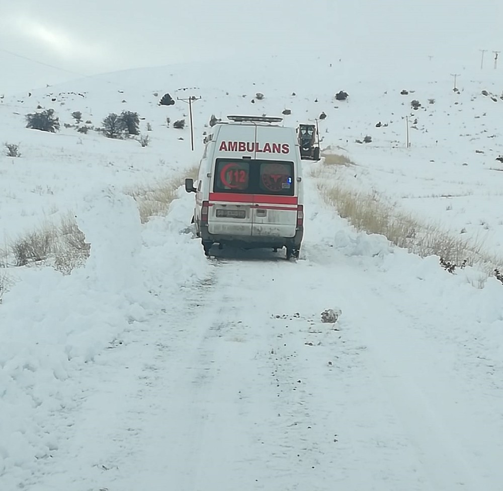 Divriği ilçesine bağlı Güllüce köyünde sağlık durumu kötüleşerek rahatsızlanan bir hastaya müdahale etmek üzere yolan çıkan ambulans karlı yolun açılmasının ardından köye ulaşabildi.