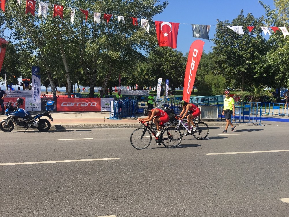 Sporcular 750 metre yüzme, 20 km bisiklet ve 5 km uzunluğundaki koşu parkurunda yarıştı. Parkurları tamamlayarak yarışmada dereceye giren sporcular madalyayla ödüllendirilecek.