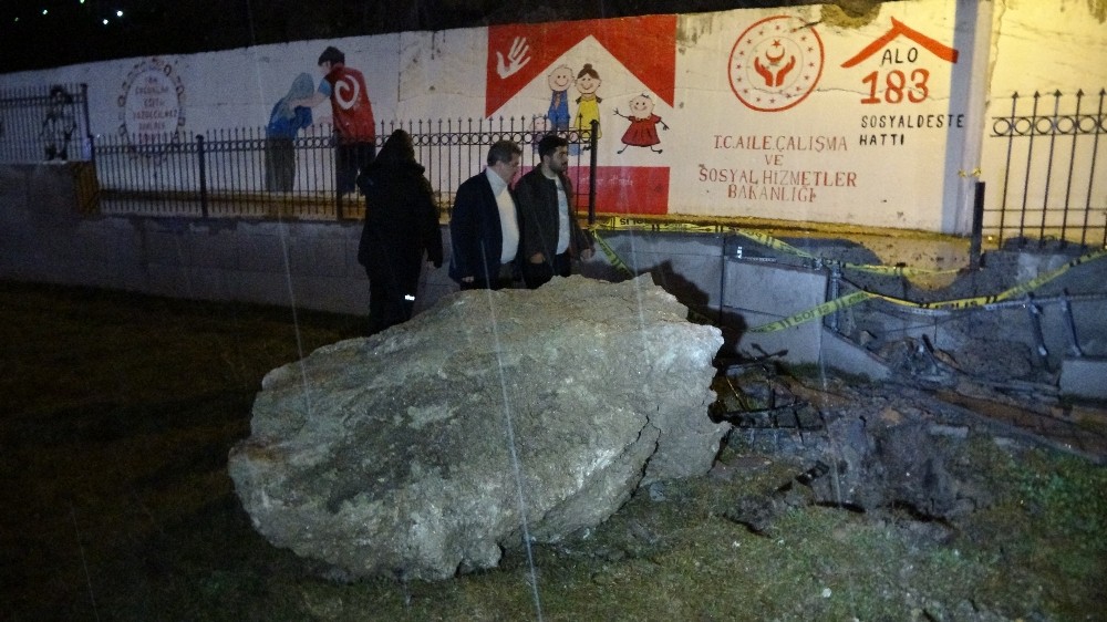 İl Müdürlüğünün bahçesine düşen kaya parçasının dışında binanın yanından geçen yola da birtakım kaya parçalarının düşerek hasar oluşturduğu görüldü.