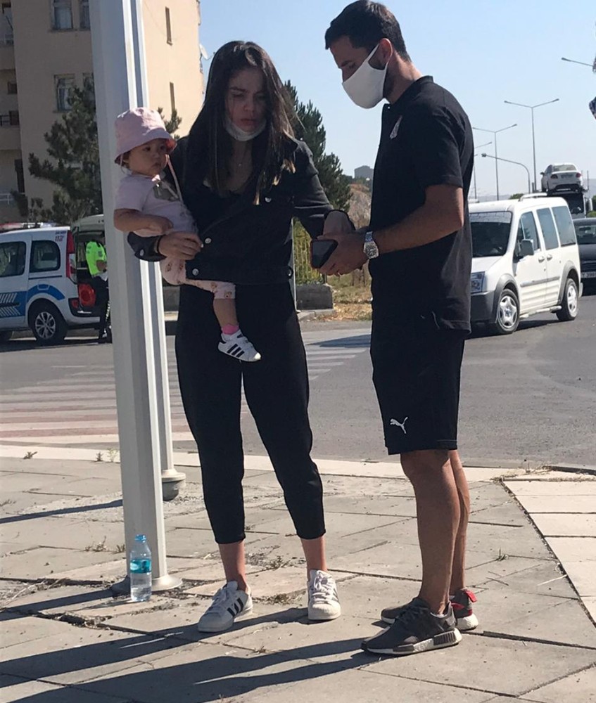 Kazanın ardından Erdoğan Yeşilyurt’un eşi ve çocuğu da kazanın yaşandığı noktaya geldi ve Sivassporlu yıldıza destek oldu.
