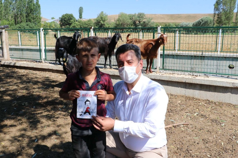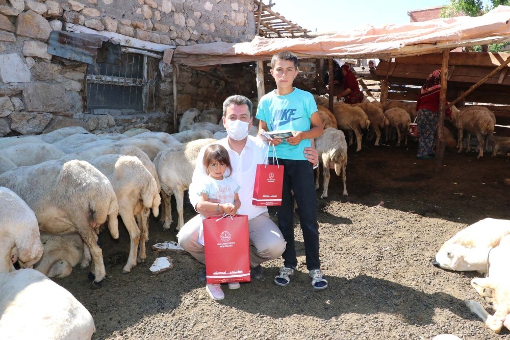 Sivas’ın merkezine bağlı Başsöğüt köyüne bir ziyarette bulunan Sivas İl Milli Eğitim Müdürü Ebubekir Sıddık Savaşçı, yaz tatilini tarlada ailelerine yardım ederek geçiren öğrencilere kitap hediye etti.