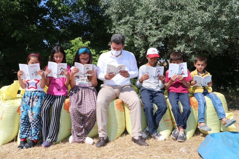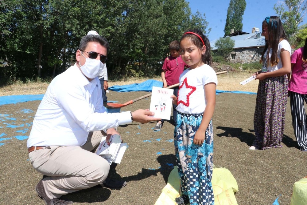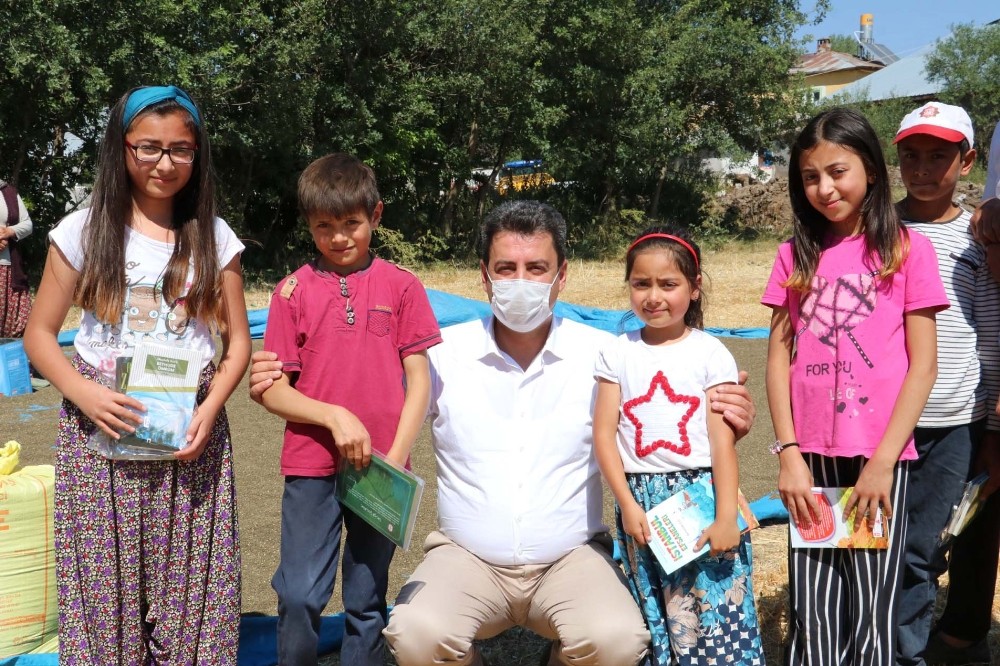 Tatilini tarlada geçiren öğrencilere kitap hediyesi