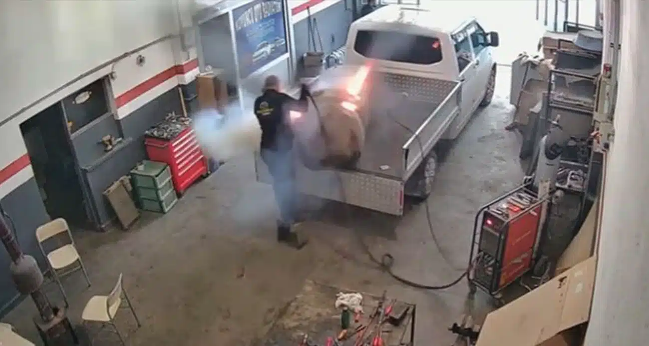 Şans eseri, başında koruyucu maske bulunan usta, bu tehlikeli durumdan yara almadan kurtulmayı başardı. Olayın şiddetli sesi üzerine çevredeki insanlar hemen dükkana koşarak yardım etti. Bu dramatik anlar, iş yerinin güvenlik kamerası tarafından saniye saniye kaydedildi. Görüntülerde, ustanın kaynak yapışı, ani patlama ve ardından yaşanan panik halleri açıkça görülüyor.