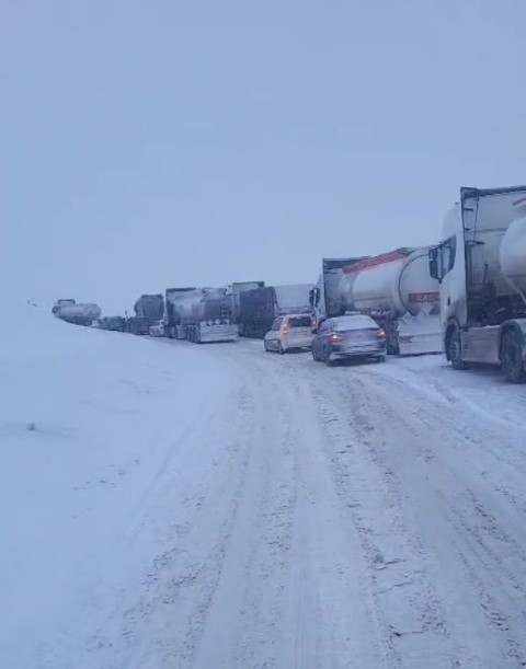 Kop Dağı Geçidi, yoğun kar yağışı ve tipinin etkisi altında kaldı. Bayburt ile Erzurum’u bağlayan bu kritik geçitte, görüş mesafesi yer yer sıfıra düşerken, birçok araç yolda hareket edemez hale geldi. Özellikle ağır tonajlı araçlar, buzlanma sebebiyle büyük zorluklar yaşadı.