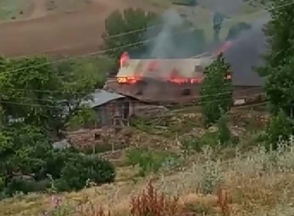 Yıldızeli ilçesinin Töngel köyünde bugün büyük bir yangın çıktı. Yaşanan yangına ait korkutucu anlar cep telefonu kameraları tarafından görüntülendi.