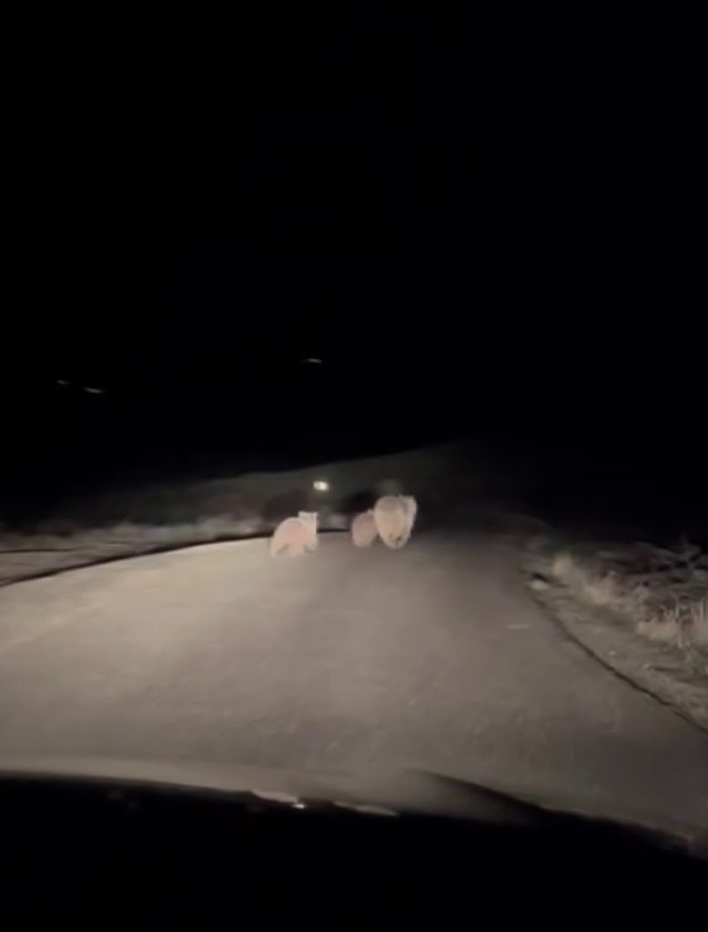 Ali Tombaz, akşamüstü ilçe merkezinden köyüne dönüş yolunda aracı ile seyahat ederken, yolun ortasında anne ayı ve iki yavrusunu gördü. Durumu fark eden Tombaz, bu nadir anları cep telefonu kamerasıyla kayıt altına aldı. Görüntülerde, ayılar bir süre yol boyunca hareket ediyor ve sonra karşı tarafa geçerek gözden kayboluyorlar.