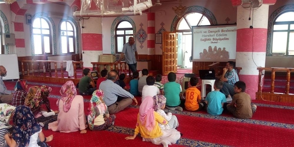 Kütahya İl Sağlık Müdürlüğünce Diyanet İşleri Başkanlığına bağlı olarak camilerde açılmış olan yaz dönemi Kur’an Kursları’na katılan öğrencilere sağlıklı yaşam eğitimleri veriliyor.