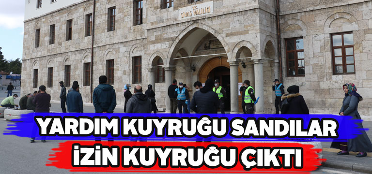 Bugün Sivas Valiliği önünde seyahat izin belgesi almak için bekleyen vatandaşlara, kuyruğu yardım kuyruğu sanarak girenler de eklenince kuyruk uzadıkça uzadı.