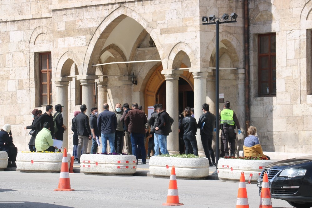 Bugün Sivas Valiliği önünde seyahat izin belgesi almak için bekleyen vatandaşlara, kuyruğu yardım kuyruğu sanarak girenler de eklenince kuyruk uzadıkça uzadı.