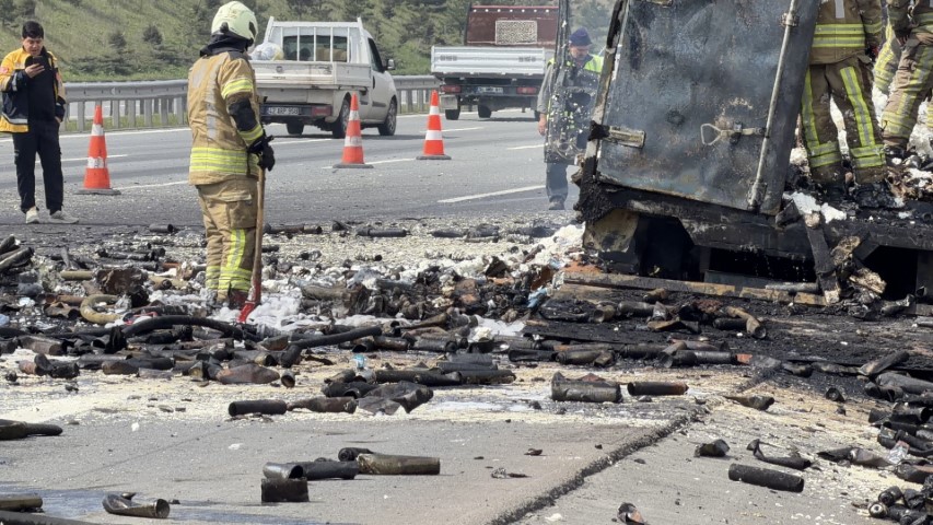 Kuzey Marmara Otoyolu’nda Köpük Sprey Yüklü Kamyonun Alevler İçinde Kalması Paniğe Neden Oldu