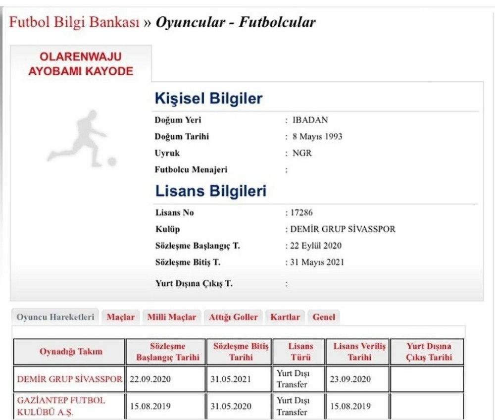 Sivasspor’un transfer ettiği son oyuncu olan Nijeryalı golcü Olarenwaju Ayobamı Kayode’nin lisansı bugün çıktı.
