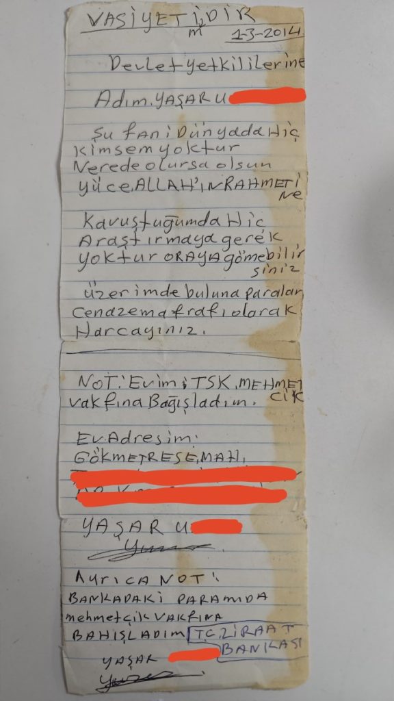 Amasya’da kalp hastalığı nedeniyle tedavi gördüğü hastanede 70 yaşında hayatını kaybeden Yaşar Uzun’un, kimsesi olmadığı için tüm mirasını Mehmetçik Vakfı’na bıraktığı ortaya çıktı. Hastane görevlileri, Uzun’un eşyalarını toplarken, 11 yıl önce yazdığı ve tüm mal varlığını vakfa bağışladığını belirten bir vasiyet mektubu buldular.