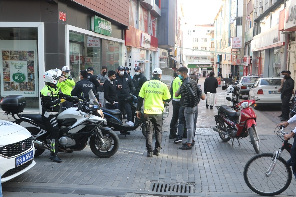 Sivas İl Emniyet Müdürlüğü ekipleri bugün şehir merkezinde motosiklet sürücülerini denetime tabi tuttu. Denetimler sonucu hem motosiklet sürücülerine, hem de motosikletlerin sahiplerine yüklü miktarda cezalar kesildi. Toplam 10,200 liralık cezanın kesildiği günde bir işletme sahibi duruma tepki gösterdi. Alpaslan Mizman isimli işletme sahibinin çalışanlarından birinin hem iki hafta önce, hem de bugün ceza yediği öğrenildi.
