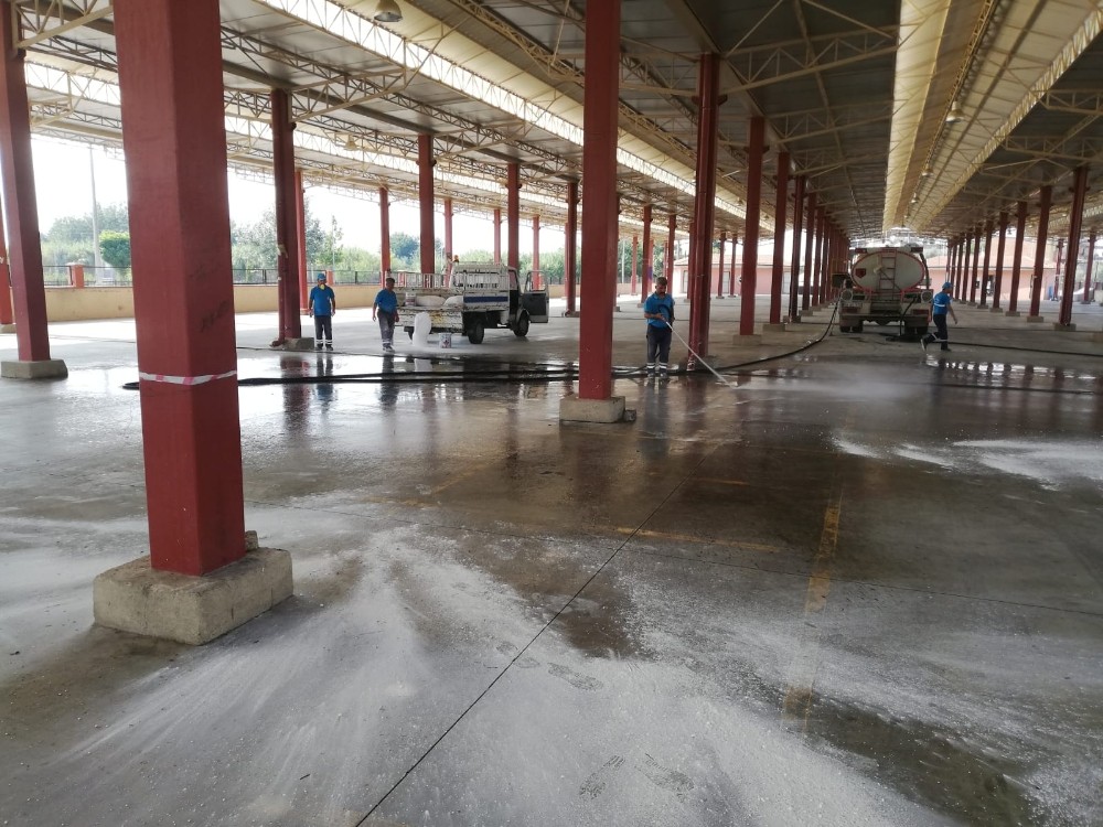 Nazilli’de Kurban Bayramı sonrası kurbanlık satışlarının yapıldığı hayvan pazarı ve çevresi Nazilli Belediyesi Temizlik İşleri Müdürlüğü ekiplerince temizlendi.