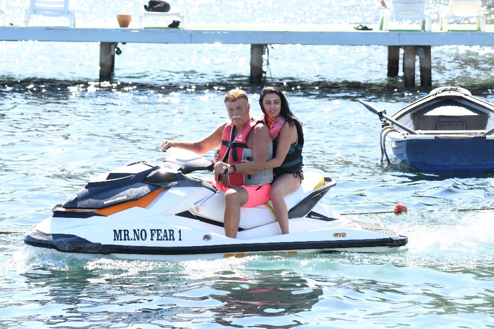 Gündoğan’da bir otelin iskelesinde sevgilisi ile görüntülenen Yeşilçam’ın ünlü oyuncusu Nuri Alço, rahat tavırlarıyla dikkat çekti. Alço, sevgilisi ile birlikte jetskiye de bindi. Uzun süre denizi tadını çıkaran ünlü oyuncu, daha sonra oteline geri döndü. Alço, “Bu Bodrum eski Bodrum değil. 1970’lerde ilk kez gelmiştim, o zamandan bu zamana çok şey değişti” dedi.