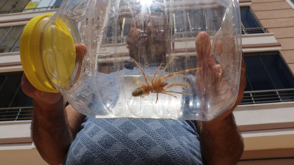 Sivas’ta merkeze bağlı Eğriköprü Mahallesi’nde bir sitenin bahçesinde yakalanan “Sarı Kız” isimli et yiyen örümcek mahalleliye büyük panik yaşattı.