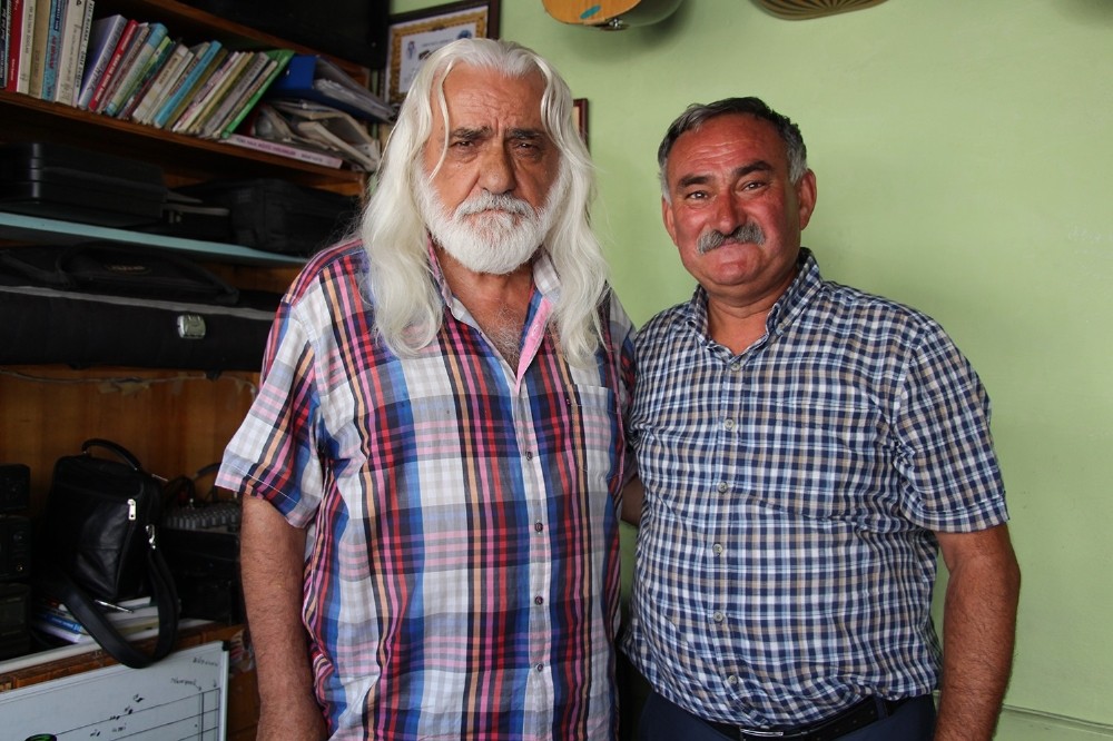 Halk ozanı ünlü sanatçı Aşık Veysel’in çırağı olarak bilinen ozan Ali Sultan, Kulalı mahalli sanatçı Sami Dinç’i ziyaret etti.