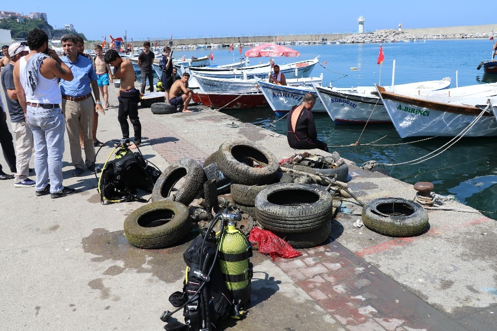 Zonguldak Esnaf ve Sanatkarları Odaları Birliği (ZESOB) Batı Karadeniz Kalkınma Ajansı’nın (BAKKA) proje desteği kapsamında Kozlu Limanında ve sahilde deniz dibine dalarak çöp topladılar. Denizden topladıklarını sahile bırakan dalgıçlar suyun dibinden araç lastiği, alkol şişeleri ve plastik atıklar çuvallara doldurularak çıkartıldı.