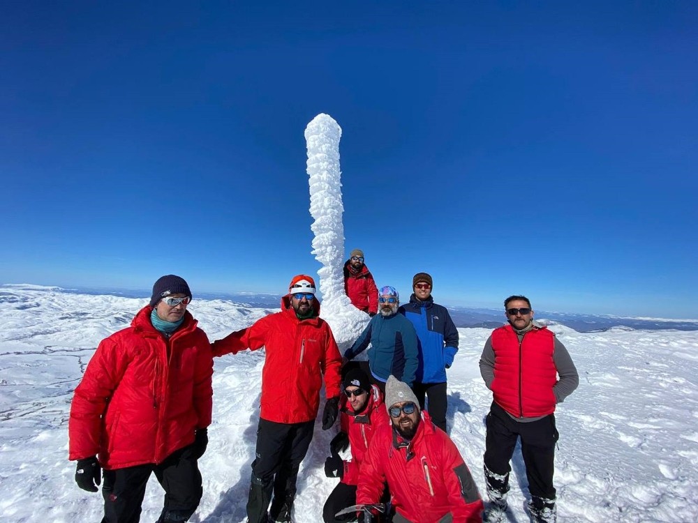 Sivas Valiliği’nden aldıkları özel izin ile birlikte bir grup dağcı kent merkezine 58 kilometre uzaklıktaki Yıldız Dağı’na tırmandı ve orada yıpranmış olan Türk Bayrağı’nı yeniledi.