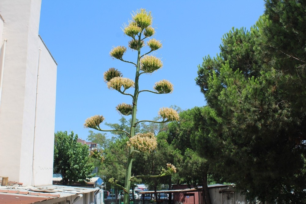Gemlik Belediyesi Park ve Bahçeler Müdürlüğü ekipleri tarafından daha önce Eski Diş Hastanesi bahçesine dikilen, Ana vatanı Orta ve Güney Amerika olan Agave bitkisi çiçeklendi.