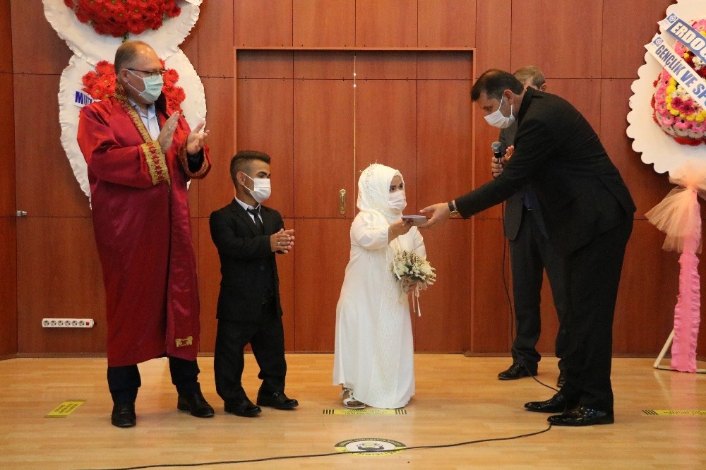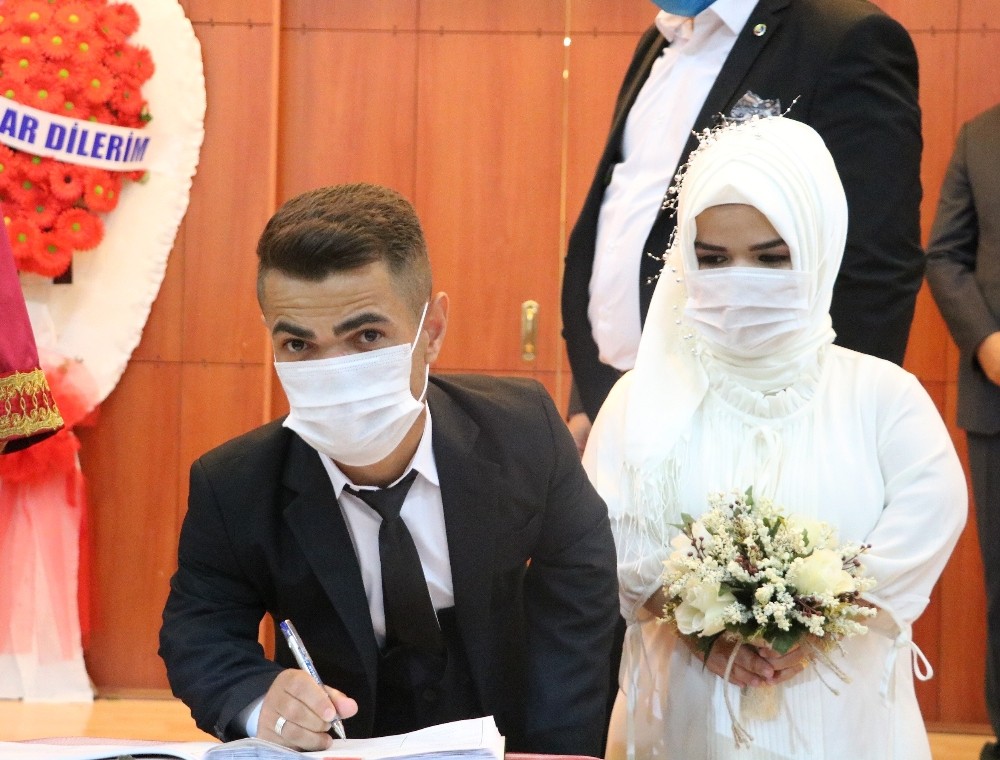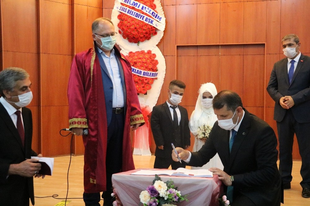Nikah töreninde korona virüsüne karşı alınan tedbirlere riayet edildiği görüldü. Vali Salih Ayhan aile cüzdanını gelin Ayzanur Yaşar’a takdim etti. Nikahtan sonra ikili büyük bir mutluluk duyduklarını beyan etti.