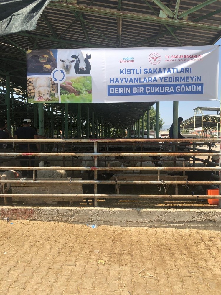 Sarıgöl İlçe Sağlık Müdürlüğü ekipleri yaklaşan Kurban Bayramı nedeniyle Manisa Büyükşehir Belediyesi Sarıgöl Canlı Hayvan Pazarında kurbanlık alacaklara uyarılarda bulundu.