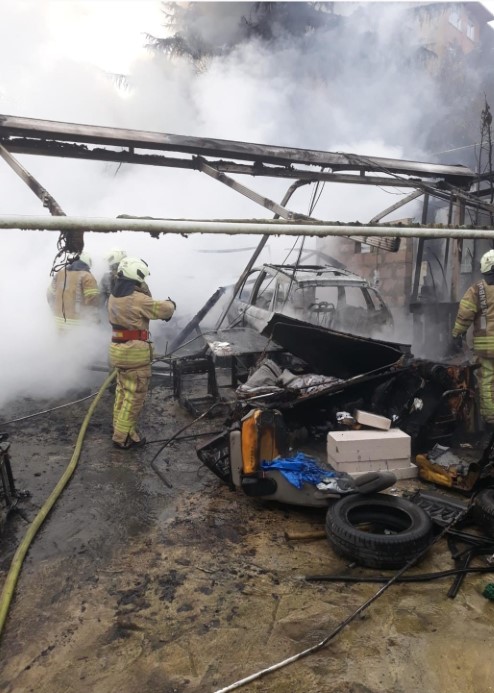 Sarıyer’de Oto Tamirhane Deposunda Korkutan Yangın