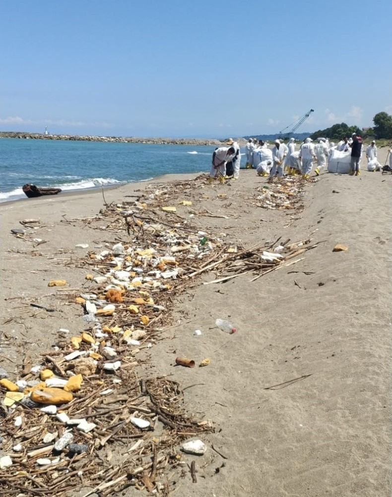 Selin Karadeniz kıyılarına getirdiği atıklar temizleniyor