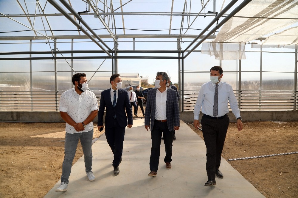 Vali Salih Ayhan yetkililerden bilgi aldıktan sonra sera sahibi Oğuzhan Okatan’a hayırlı olsun dileklerini iletti ve köyden ayrıldı.