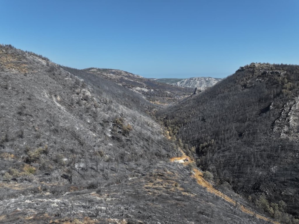 Orman ekipleri, yangın sonrası bölgede soğutma çalışmalarına devam ederken, hasar tespit çalışmaları da yapılmaktadır. Yanan alanın 15 bin dönümden fazla olduğu belirlendi. Şimdiye kadar 53 evin hasar gördüğü ve saha taramalarının sürdüğü bildirildi. Bölgedeki yıkımı gözler önüne seren acı manzaralar, fotoğraf sanatçısı ve kuş gözlemcisi Nadir Köksoy tarafından havadan kaydedildi. Yanan bölgelerin net görüntüleri, izleyenleri derinden etkiledi.