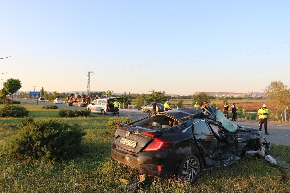 Olay bugün saat 19.30 sularında Kayseri Caddesi’nin üniversite kavşağında yaşandı. Sebebi henüz belirlenemeyen bir şekilde bir otomobil ile içinde mucur yüklü olan kamyon çarpıştı. Çarpışmanın etkisiyle dev kamyon yüküyle birlikte devrildi. Otomobil ise kullanılamaz hale geldi.