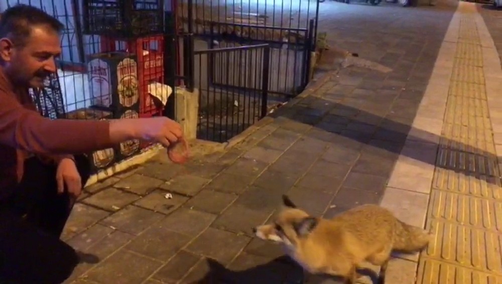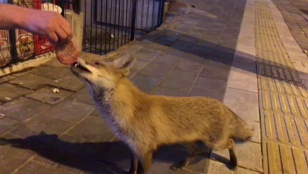 Sosyal medyaya yansıyan “Sivas köftesi yiyen tilki” görüntüleri izleyenlerin içini ısıttı.