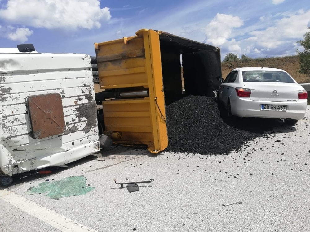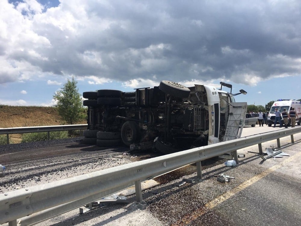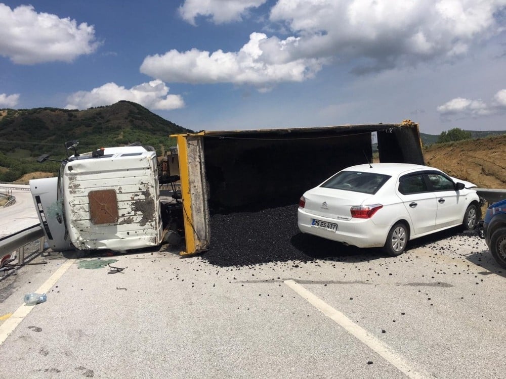 Olay içinde asfalt yüklü kamyon sürücüsünün direksiyon hakimiyetini kaybetmesiyle başladı. Bekir E. isimli sürücünün kamyonu devirmesiyle birlikte karayolu tamamen trafiğe kapandı. Bu olay karşısında arkadan gelen otomobil kamyona çarparak durdu. Kaza sonucunda kamyon ve otomobilin sürücüsü ile otomobilde bulunan diğer 2 yolcu yaralandı.