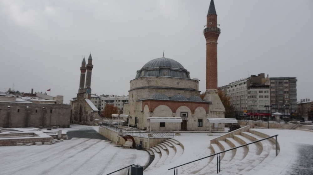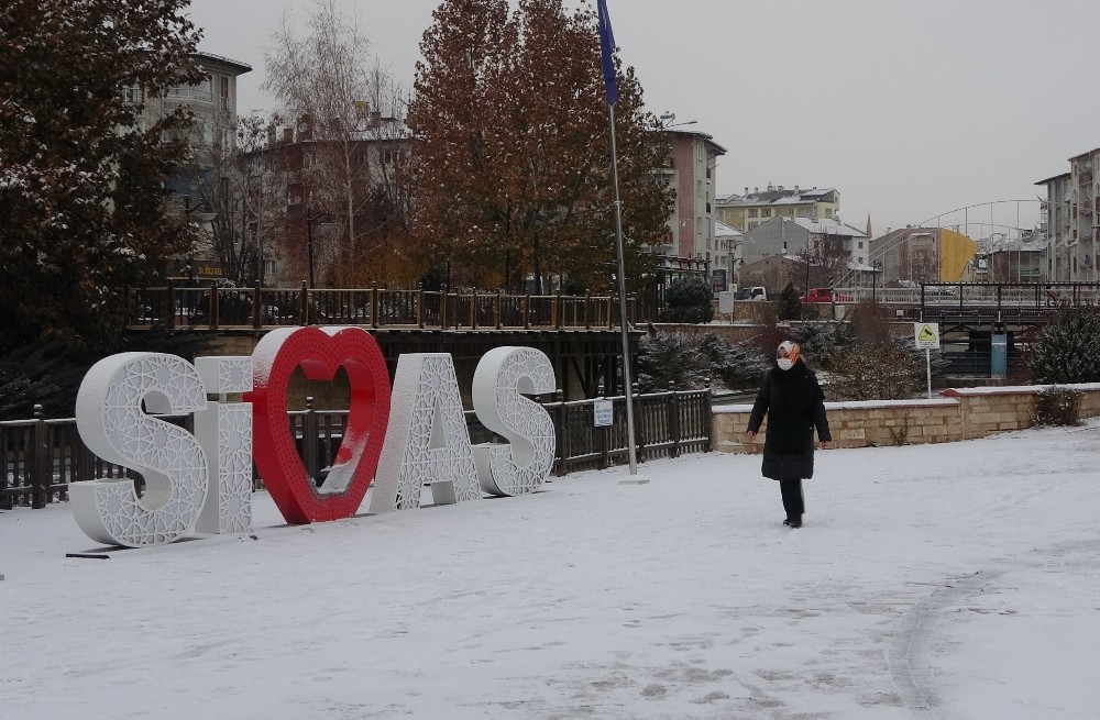 Uzun süredir dondurucu soğuğun etkili olduğu Sivas genelinde dün akşam yağan kar ile birlikte kent geneli bembeyaz bir örtü ile kaplandı.