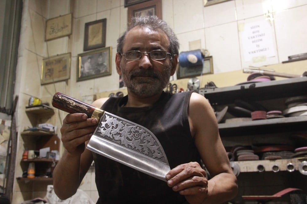 Sivas’ta uzun yıllardır bıçak ustalığı yapan Mustafa Argut’un el işçiliği ile Osmanlı motiflerini işlediği özel bıçağa yurt dışından talep yağıyor.
