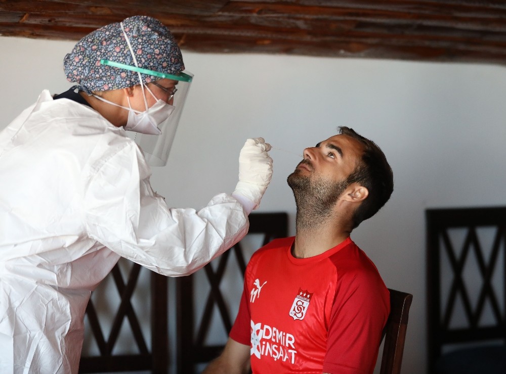 Geçtiğimiz sezonun son bölümlerinde sıklıkla korona virüs testine giren Sivassporlu futbolcular, uzun bir aradan sonra yeniden korona virüs testi oldu.