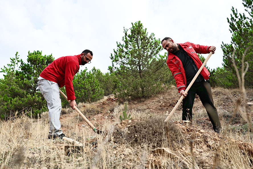 Konuşmaların ardından protokol üyeleri, kamu kurumlarının temsilcileri, öğrenciler ve gönüllü vatandaşlar fidan dikimine katıldı.