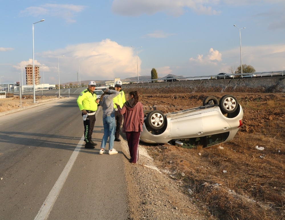 Öğrenilen bilgilere göre kaza, saat 16.00 sıralarında Sivas-Erzincan karayolu Otogar kavşağında yaşandı. Kent merkezi istikametine gitmek için kavşakta bulunan yan yolu kullanmak isteyen K.H.T. idaresindeki 58 BG 059 plakalı otomobil, sürücüsünün direksiyon hakimiyetini kaybetmesi sonucu yoldan çıktı. Yoldan çıkan otomobil takla atarak durabildi. Takla atan otomobili gören vatandaşlar durumu sağlık ekiplerine bildirdi. Otomobil sürücüsü K.H.T. ve araçta bulunan arkadaşı takla atan otomobilden burnu bile kanamadan çıktı. Sürücü ve arkadaşı olay yerine gelen sağlık ekiplerinin müdahalesini ise kabul etmedi. Sürücü ve arkadaşının kaza esnasında emniyet kemerinin takılı olduğu öğrenildi. Polis ekipleri, kazayla ilgili inceleme başlattı.