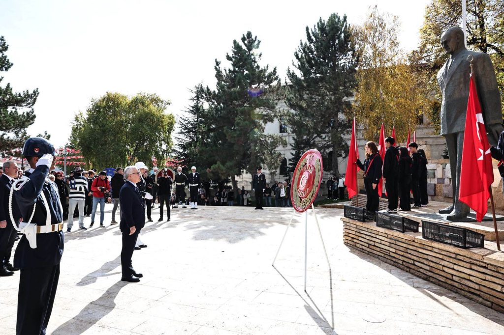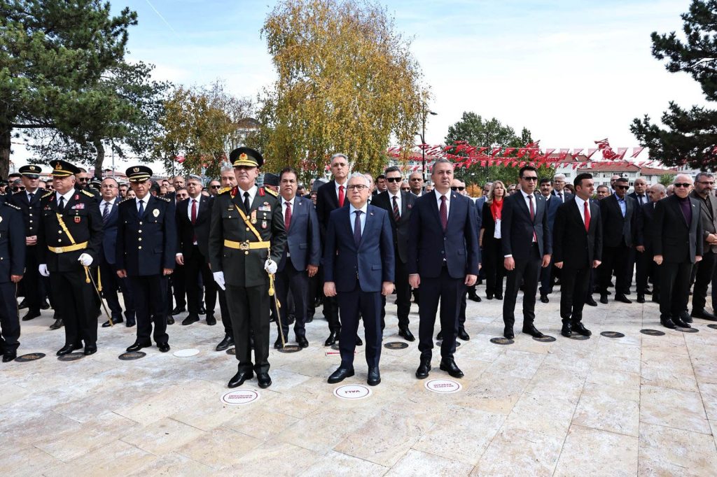 29 Ekim Cumhuriyet Bayramı’nın 102. yıl dönümü etkinlikleri kapsamında, Atatürk Anıtı’nda çelenk sunma töreni gerçekleştirildi. Törene Sivas Valisi Yılmaz Şimşek, Garnizon ve 5’inci Piyade Eğitim Tugay Komutanı Tuğgeneral Zeynel Abidin Alptekin, Belediye Başkanı Adem Uzun, askeri, mülki ve adli erkânın yanı sıra kamu kurum ve kuruluş temsilcileri katıldı. Atatürk Anıtı’na çelenklerin sunulmasının ardından, saygı duruşunda bulunuldu ve İstiklâl Marşı okunarak tören sona erdi.