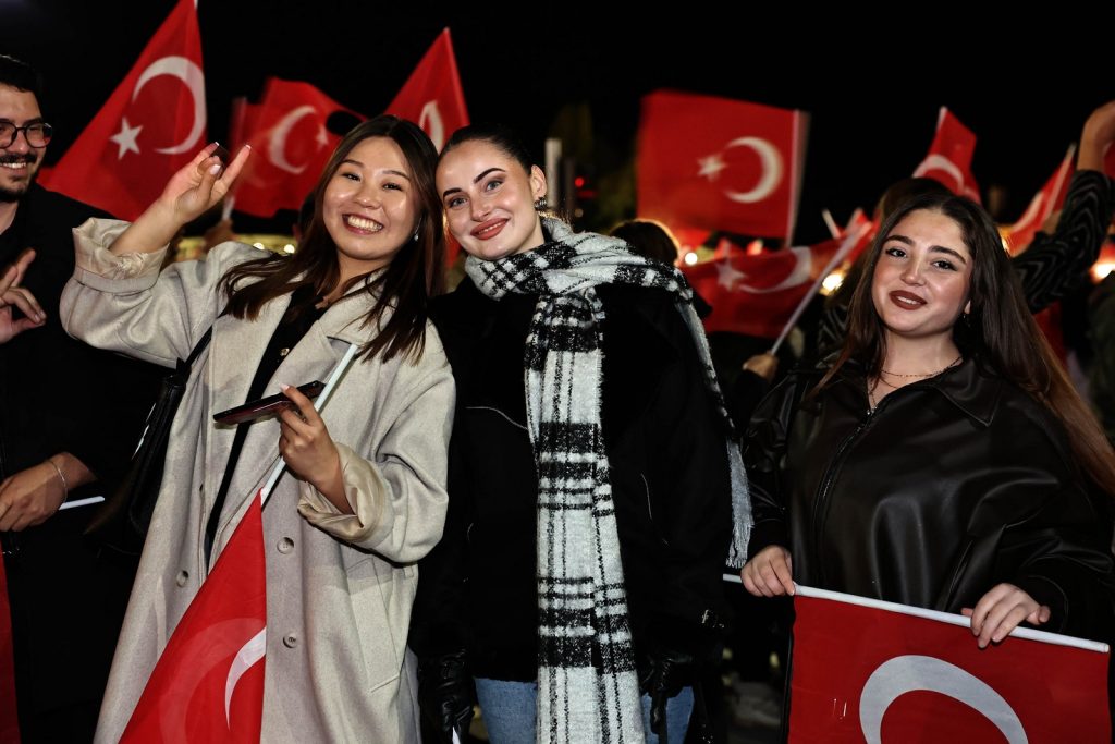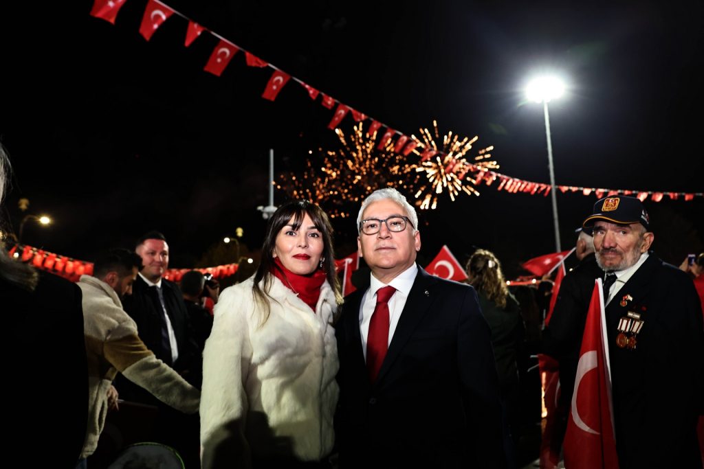 Ay yıldızlı bayraklarımız eşliğinde coşkulu marşların söylendiği etkinlik, havai fişek gösterisiyle son buldu.