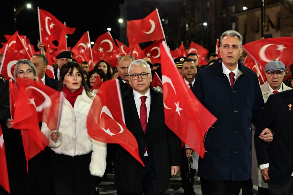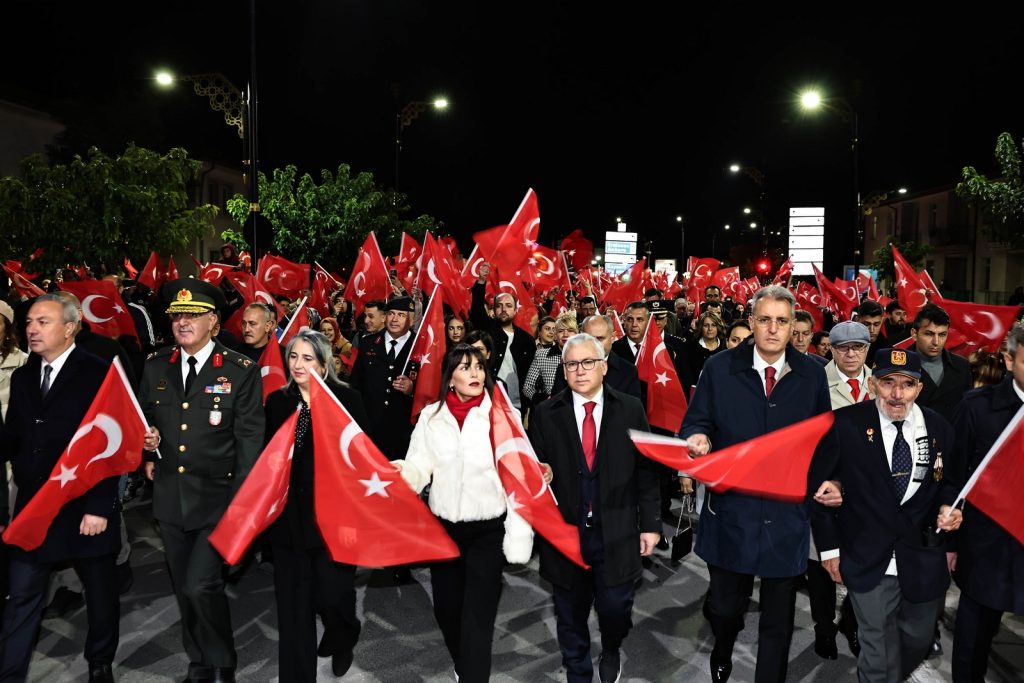 Vali Yılmaz Şimşek, eşi Dr. Çiğdem Olgun Şimşek Hanımefendi, il protokolü ve vatandaşların katılımıyla tren garından Hükümet Meydanı’na uzanan bir Cumhuriyet yürüyüşü gerçekleştirildi.